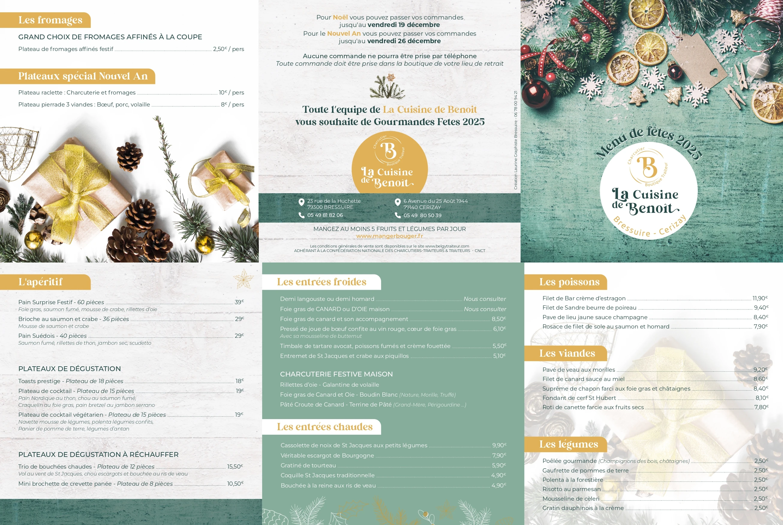 Pour les occasions spéciales, La Cuisine de Benoît propose des menus personnalisés, parfaits pour les réceptions et les événements festifs.